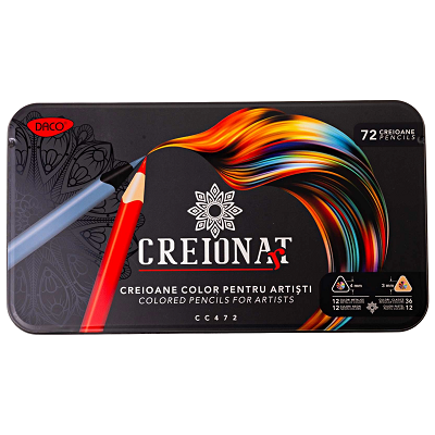 Creioane colorate 72 culori cutie metalică DACO sunt împărțite în patru tipuri: