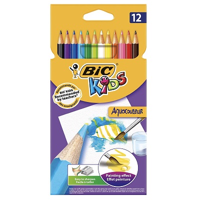 - Un pachet de 12 creioane BIC Kids Aquacouleur in diverse culori cu plumb pigmentat colorat pentru o acoperire maximă;