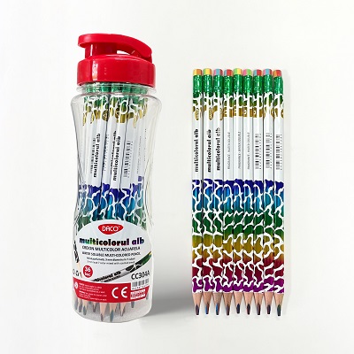 Creionul color multicolor Acuarela este alegerea ideală pentru cei care doresc să adauge un strop de magie și inovație proiectelor lor artistice. Aceste creioane oferă o experiență unică de colorat, combinând culorile vibrante cu efectele acuarelei și un parfum plăcut.