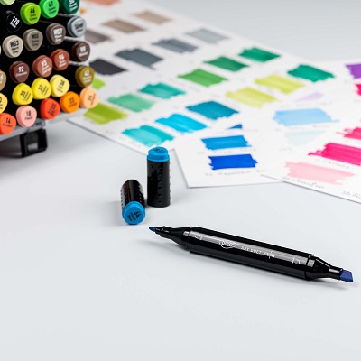- Gama larga de culori: Setul contine 36 de markere pe baza de alcool de diferite culori, atat culori primare, cat si culori complementare. Capacele markerelor sunt inscriptionate cu un cod de culoare care ajuta la identificarae culorilor. Sunt ideale pentru a fi folosite de catre profesionisti in proiectele lor de design, proiectare sau design vestimentar, cat si de amatori sau artisti manga (tehnica ce are la baza arta japoneza) in schitele sau desenele lor.
