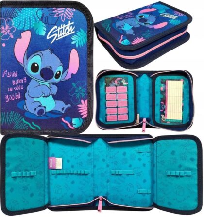Penar 1 fermoar 2 extensii neechipat Stitch este un echipament de bază ideal pentru școală, prevăzut cu spații destinate instrumentelor de scris și accesoriilor tale preferate și decorat cu motive inspirationale și originale.