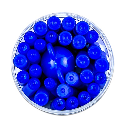 - Cerneala albastra este nepermanenta, se sterge cu radiera de la capatul recipientului inclus.